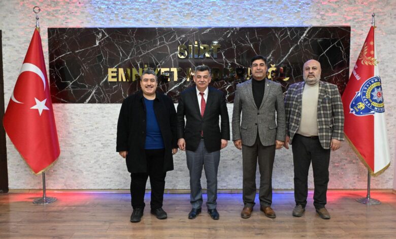 Yener Tanık ve beraberindeki heyet, Siirt İl Emniyet Müdürü Necmettin Öztürk’ü makamında ziyaret ederek hayırlı olsun dileklerini iletti. Gerçekleşen ziyarette, kurumlar arası iş birliği ve toplumun huzuru için yürütülen çalışmalar üzerine değerlendirmelerde bulunuldu.