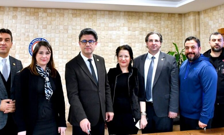 ÇOMÜ Rektörü Prof. Dr. R. Cüneyt Erenoğlu, Rektör Yardımcıları Prof. Dr. Evren Karayel Gökkaya, Prof. Dr. Hüsnü Levent Dalyancı, Prof. Dr. Arda Aydın, Sağlık Kültür Spor Dairesi Başkan V. Deniz Canıtez, Spor Birliği Koordinatörü Dr. Öğr. Üyesi Deniz Ünver ve beraberindeki ekip, Rektörlük makamında, 28 Şubat 2025 tarihinde ÇOMÜ’nün Platinium Seviye FISU Sağlıklı Kampüs Sertifikası almasını pasta keserek kutladı.